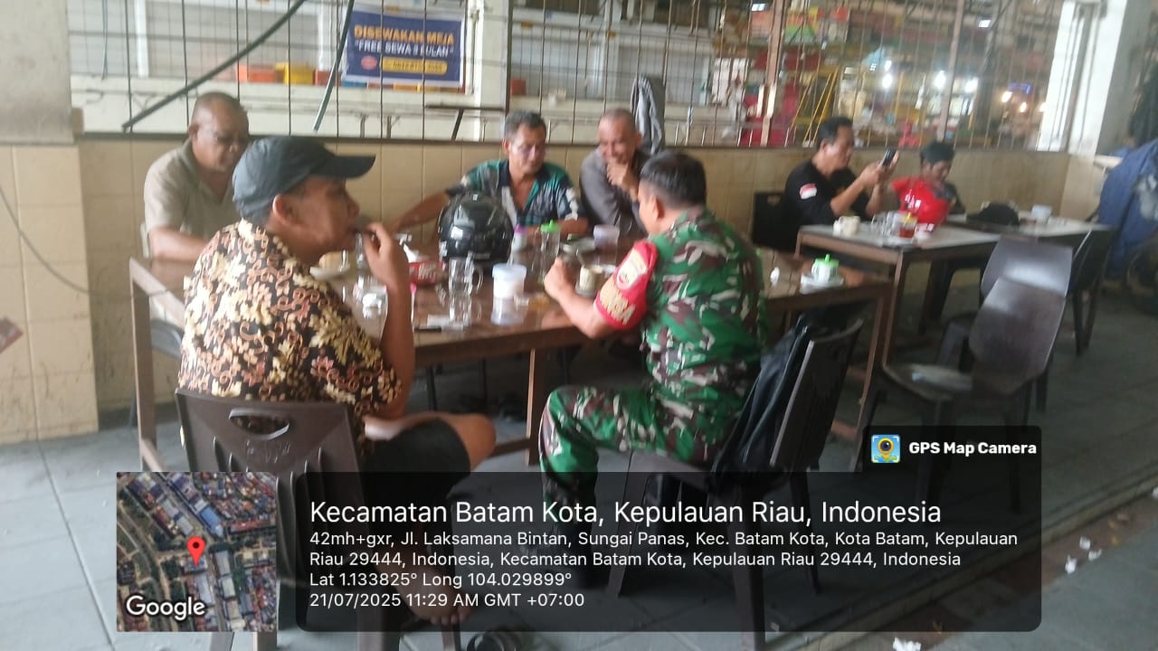 Batam-Babinsa 10 Sei Panas Koramil 03/Nongsa Sertu M Nasri Melaksanakan komsos di Binaan Kel, S Panas Kec, Batam Kota.Senin [21/07/2025].