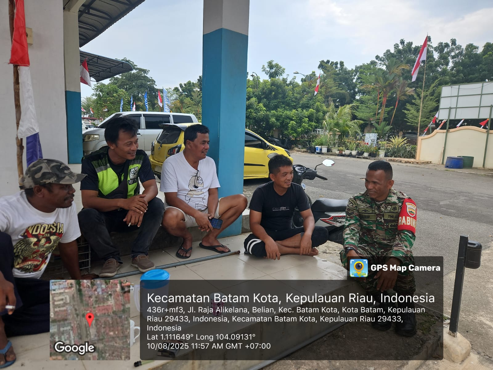 Batam-Babinsa 06 Kelurahan Belian Koramil 03/Nongsa melaksanakan kegiatan Komunikasi Sosial (Komsos) bersama warga binaan di Perumahan Hawaii Garden RW 51, Kelurahan Belian, Kecamatan Batam Kota, pada Minggu (10/08/2025) pukul 11.30 WIB.