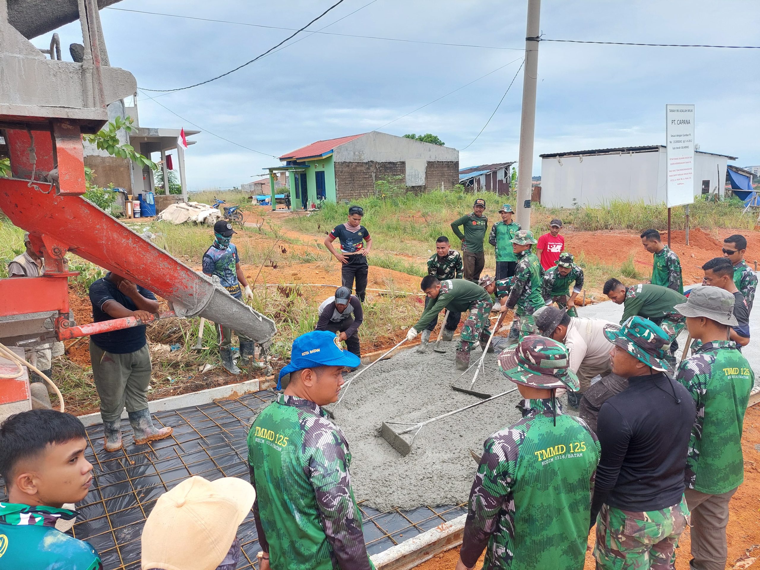 Detikinewsinfo.Com]  Program TNI Manunggal Membangun Desa (TMMD) ke-125 di Kavling Sambau IV, Kelurahan Sambau, Kecamatan Nongsa, telah memasuki hari ke-24 pelaksanaan. Pengerjaan fisik jalan cor beton sepanjang 1.553,3 meter, lebar 4,3 meter, dan ketebalan 15 cm kini sudah mencapai 89 persen.
