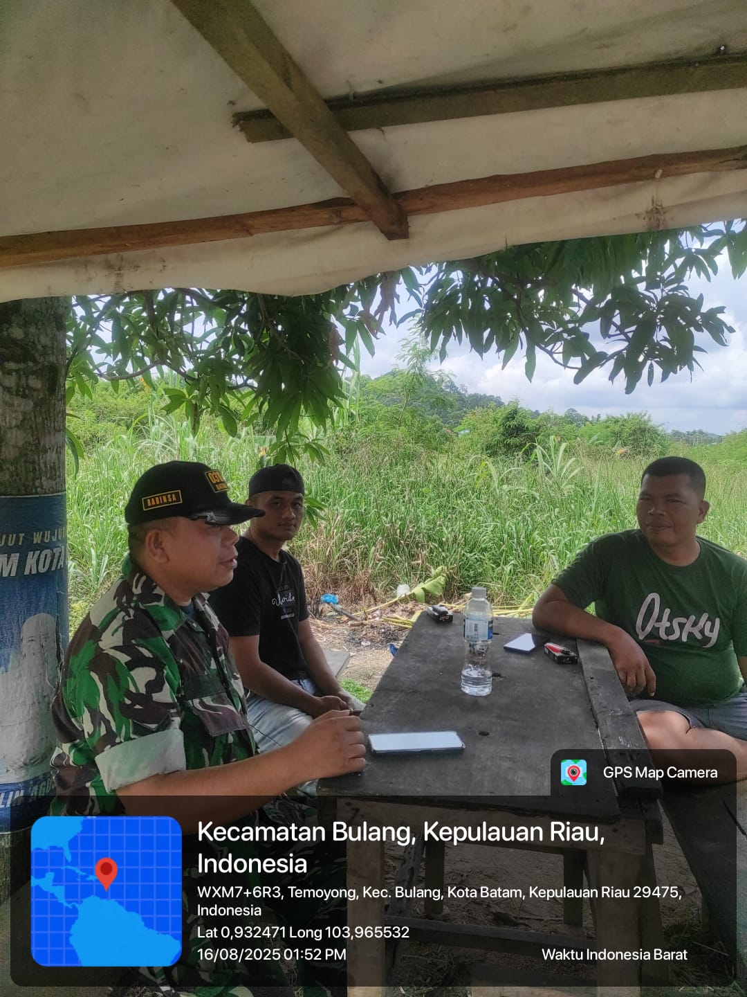 Batam-Babinsa 22 Kelurahan Tumoyong Koramil 02/Sekupang, Serda J. Manalu, melaksanakan kegiatan Komunikasi Sosial (Komsos) bersama warga di Kelurahan Tumoyong, Kecamatan Bulang, Sabtu (16/8/2025).