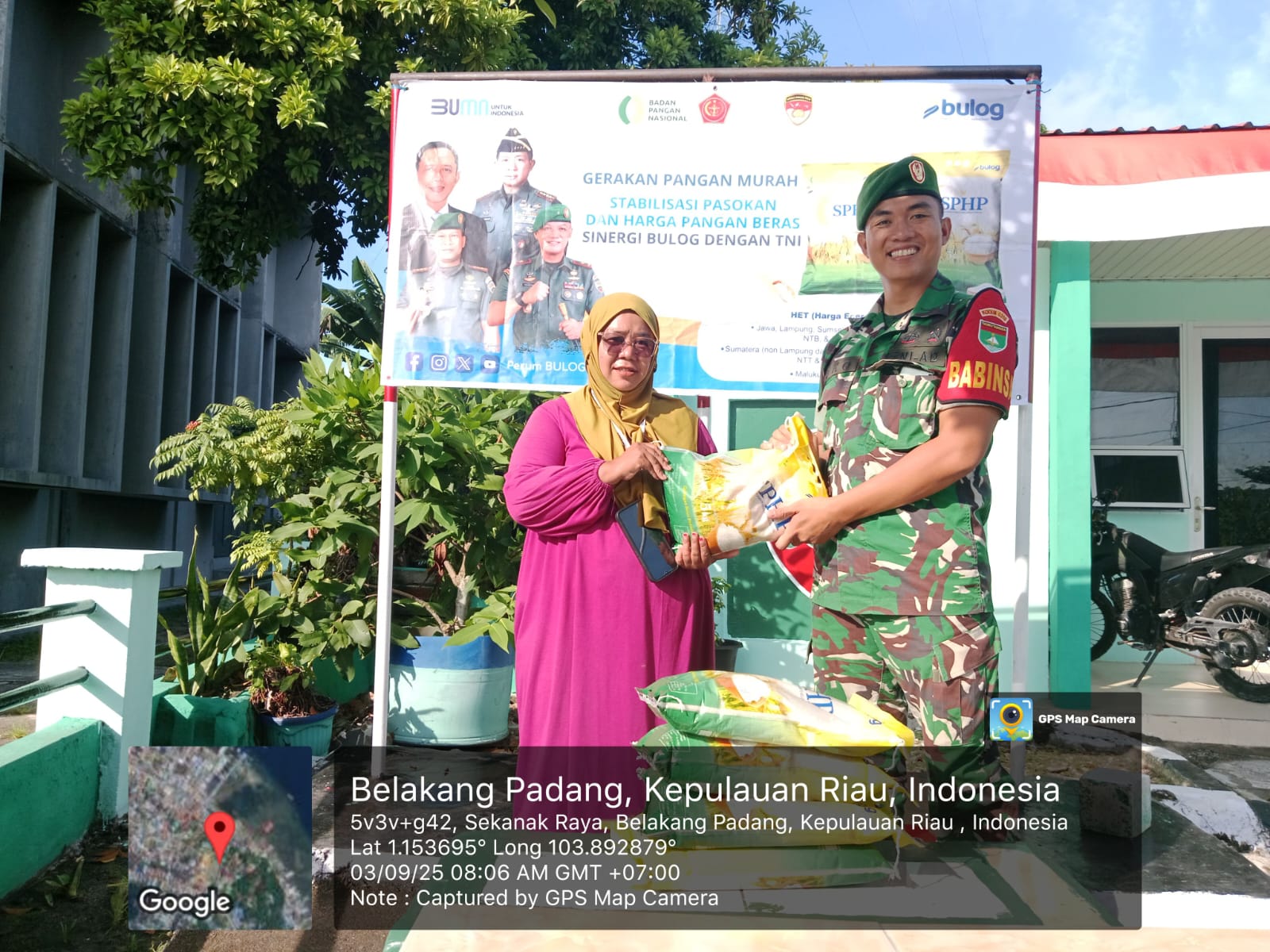 Batam- Upaya membantu masyarakat mendapatkan bahan pokok dengan harga terjangkau terus dilakukan TNI di wilayah teritorialnya. Hal ini terlihat dari kegiatan Komunikasi Sosial (Komsos) yang dilakukan Babinsa 03/Kelurahan Pemping, Koramil 05/Belakang Padang, Serka Eko Pranoto, sekaligus melaksanakan Gerakan Pangan Murah bekerja sama dengan Bulog, Rabu (03/09/2025) pagi di Kecamatan Belakang Padang.