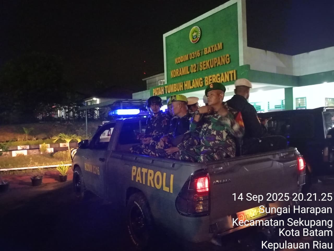 Detikinewsinfo.com] Upaya menjaga keamanan dan ketertiban masyarakat (kamtibmas) terus dilakukan oleh jajaran TNI di Kota Batam. Pada Minggu malam (14/9/2025), Koramil 02/Sekupang melaksanakan patroli gabungan bersama sejumlah organisasi masyarakat di wilayah Kecamatan Sekupang.