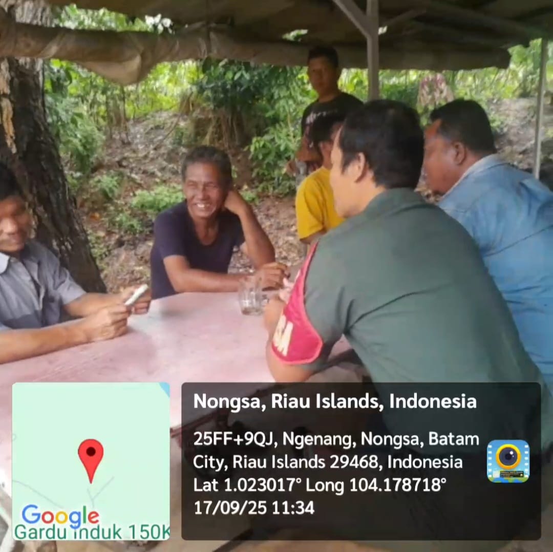 Batam – Babinsa 08 Kelurahan Ngenang, Koramil 03/Nongsa, Kodim 0316/Batam, Sertu Alexsander, melaksanakan kegiatan komunikasi sosial (komsos) bersama warga di Pulau Ngenang pada Rabu (17/9/2025) siang. Kegiatan berlangsung pukul 11.00 WIB di kedai milik Bapak Yadi, RT 02/RW 01, Kelurahan Ngenang, Kecamatan Nongsa, dan dihadiri sejumlah warga setempat.