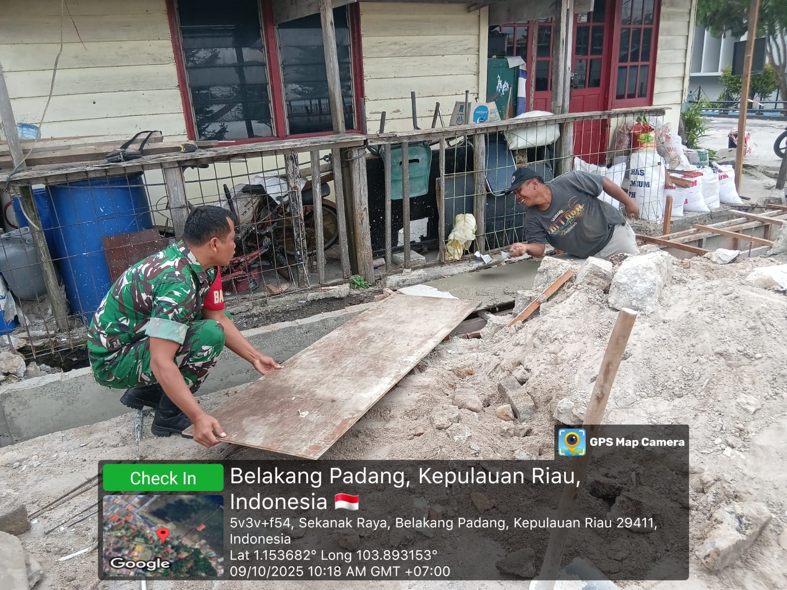 Kegiatan berlangsung pada Kamis, 9 Oktober 2025 pukul 10.30 WIB, bertempat di kawasan Sekanak, Kecamatan Belakang Padang. Suasana kekeluargaan tampak kental ketika Babinsa berinteraksi langsung dengan warga yang sedang bekerja membangun saluran air di lingkungan mereka.