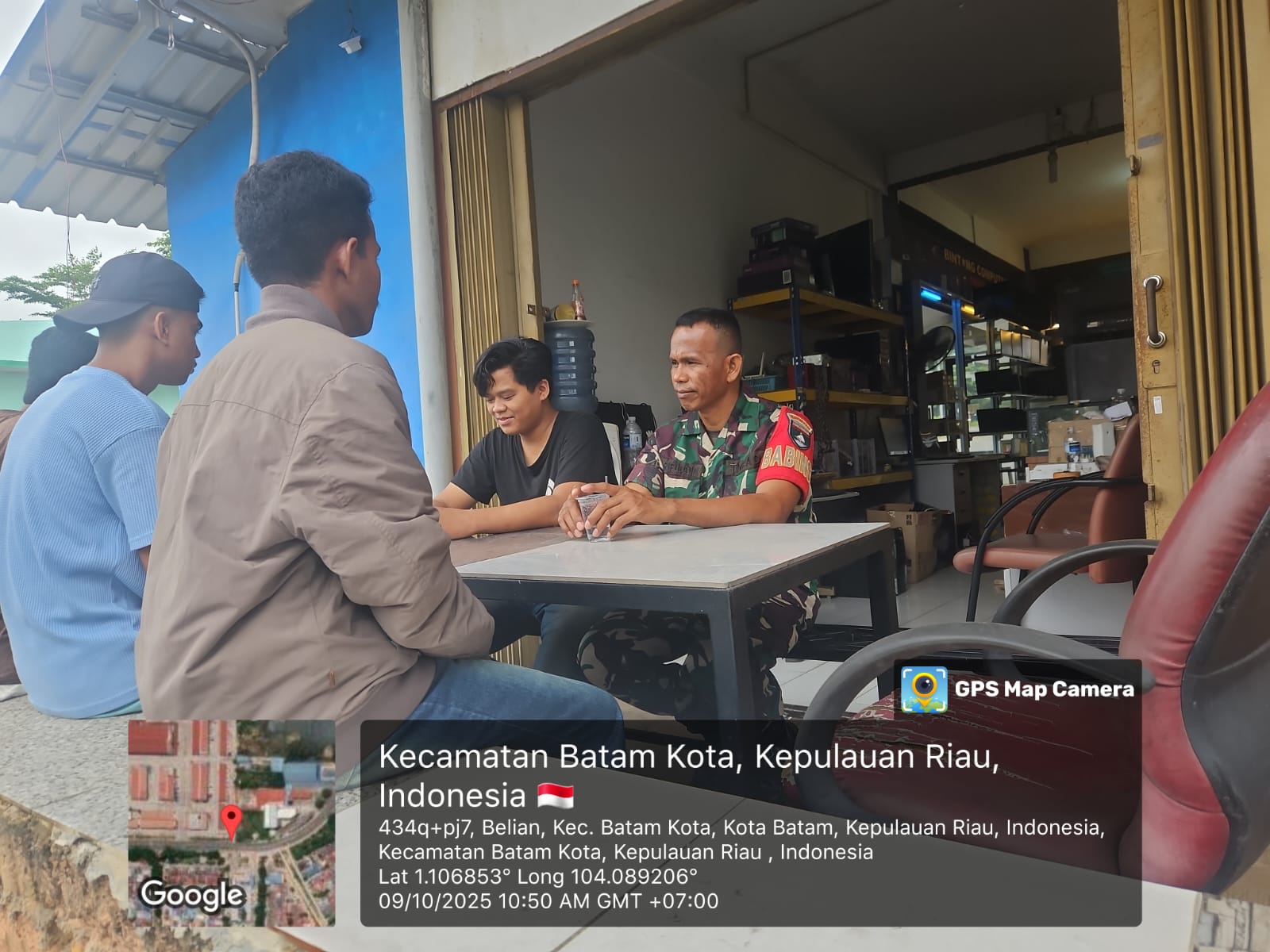 Batam -Di tengah derasnya arus modernisasi dan tantangan generasi muda saat ini, Babinsa 06 Kelurahan Belian dari Koramil 03/Nongsa Kodim 0316/Batam turun langsung ke lapangan untuk menjalin komunikasi sosial (komsos) bersama para remaja di wilayah binaannya.