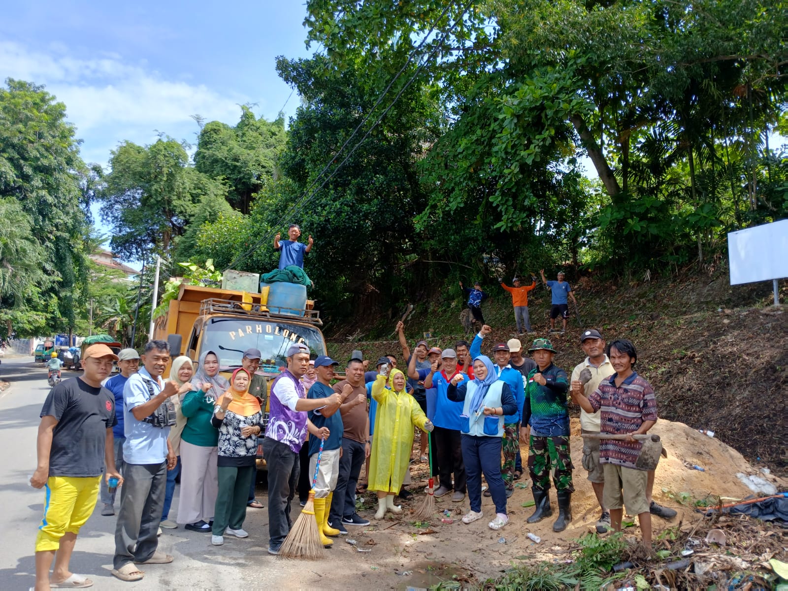 Adapun sasaran gotong royong kali ini meliputi pembersihan rumput liar di sepanjang row jalan, pengangkatan tumpukan sampah yang menumpuk di saluran air, serta penebangan pohon liar yang berpotensi mengganggu akses jalan dan drainase.