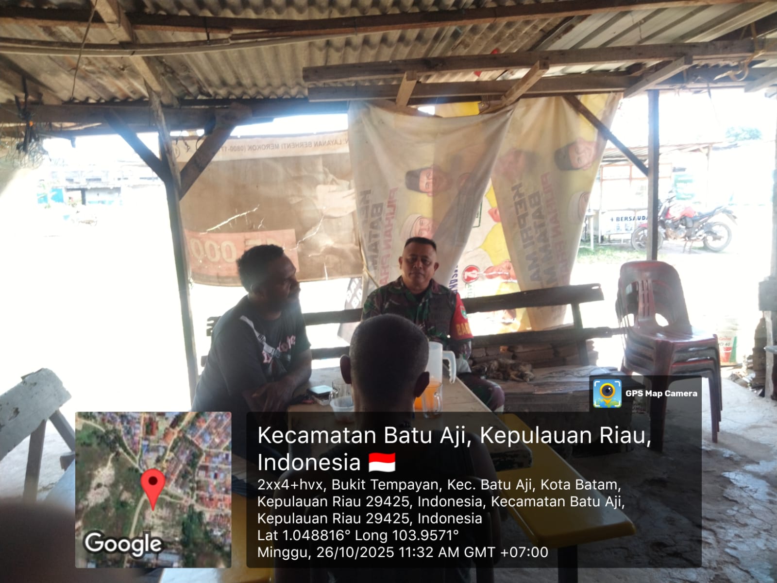 Batam-Dalam upaya mempererat hubungan dengan masyarakat serta menjaga kondusifitas wilayah binaan, Babinsa Kelurahan Bukit Tempayan, Koramil 02/Sekupang, Kodim 0316/Batam, Sertu Mukhtar, melaksanakan kegiatan Komunikasi Sosial (Komsos) bersama warga binaan di Kelurahan Bukit Tempayan, Kecamatan Batu Aji, Kota Batam, Minggu (26/10/2025).