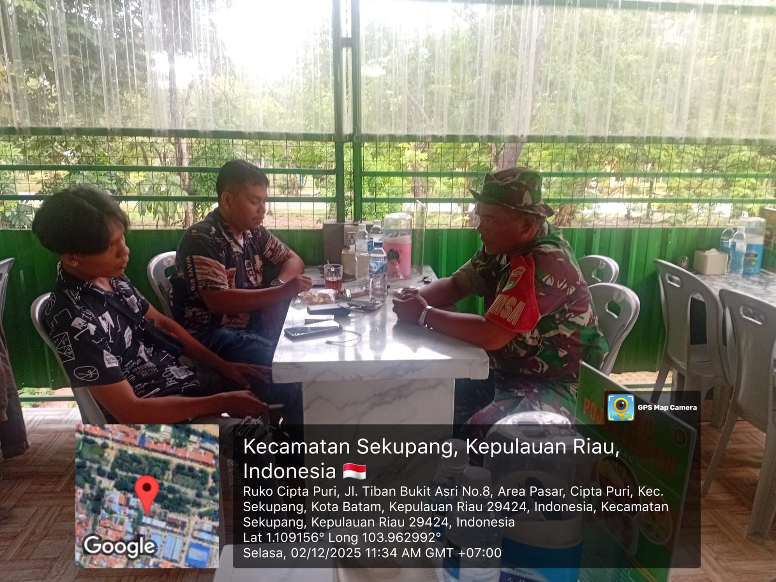 Batam- Upaya meningkatkan keamanan, keharmonisan, dan kesiapsiagaan masyarakat terus dilakukan aparat teritorial TNI AD. Pada Selasa (2/12/2025), Babinsa Kelurahan Tiban Baru, Koramil 02/Sekupang, Serka T. Siburian, menggelar kegiatan komunikasi sosial (komsos) bersama warga binaan di Warung Pojok, Komplek Pasar Cipta Puri, Kelurahan Tiban Baru, Kecamatan Sekupang.