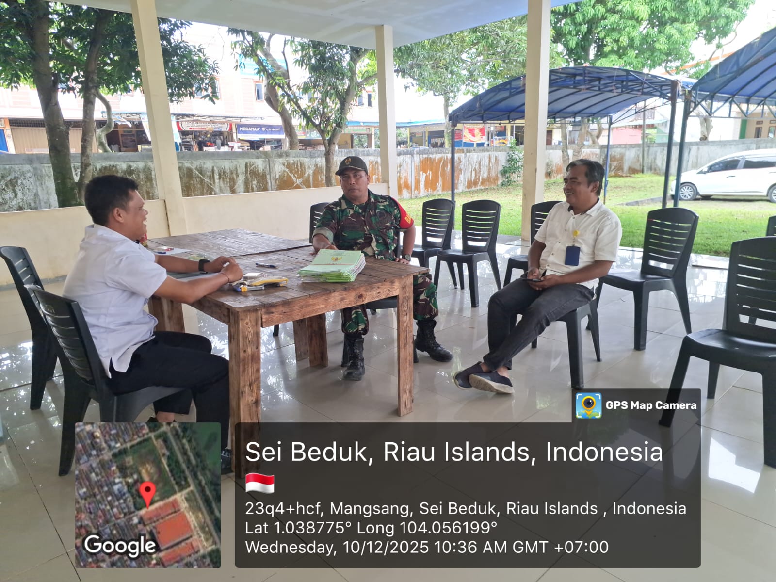 Batam-Dalam rangka memperkuat sinergi antara TNI AD dan pemerintah kelurahan dalam pelayanan masyarakat, Babinsa 17 Mangsang Koramil 01/Lubuk Baja, Serka Azuar Siregar, melaksanakan kegiatan silaturahmi dan komunikasi sosial (komsos) dengan aparat Kelurahan Mangsang, Kecamatan Sei Beduk, Rabu (10/12/2025) pukul 10.36 WIB. Pertemuan berlangsung di pendopo kantor lurah RW 06, RT 01.