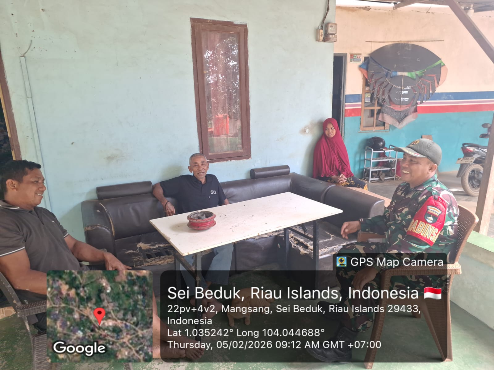 Batam- Upaya memperkuat kedekatan TNI dengan masyarakat terus dilakukan melalui kegiatan komunikasi sosial (komsos) di wilayah binaan. Babinsa 17/Kelurahan Mangsang, Koramil 01/Lubuk Baja (LB), Serka Azuar Siregar melaksanakan kegiatan komsos bersama warga di RT 02 RW 04, Kelurahan Mangsang, Kecamatan Sei Beduk, Kota Batam, Kamis (5/2/2024) pagi.
