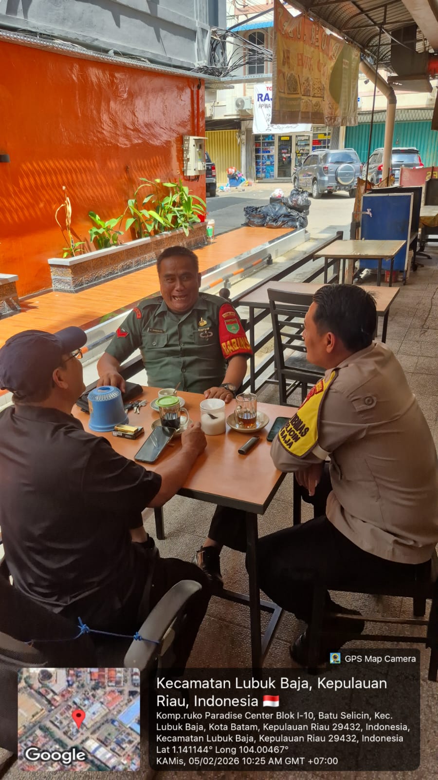 Kegiatan yang berlangsung mulai pukul 10.25 WIB tersebut digelar di Kedai Kopi 18, Kelurahan Batu Selicin, sebagai bagian dari upaya membangun kedekatan serta memperkuat koordinasi antara TNI, Polri, dan masyarakat.