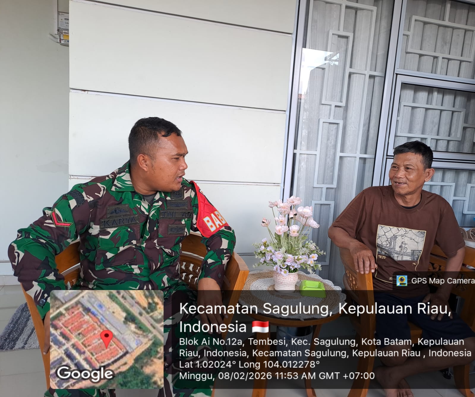 BATAM — Babinsa Koramil 02/Sekupang terus mengintensifkan kegiatan komunikasi sosial (Komsos) sebagai upaya mempererat hubungan dengan masyarakat sekaligus menyampaikan pesan-pesan pembinaan di wilayah binaan. Pada Minggu (8/2/2026), Babinsa Kelurahan Tembesi, Kopda Karya, melaksanakan kegiatan Komsos bersama warga di Kelurahan Tembesi, Kecamatan Sagulung, Kota Batam.