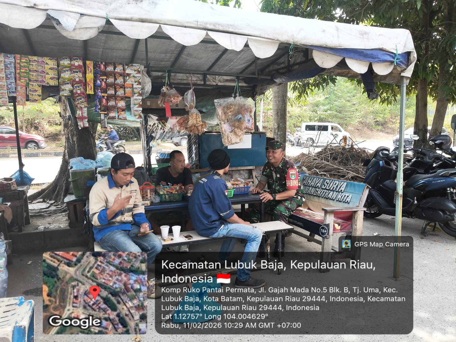 Batam-Upaya pencegahan peredaran narkoba dan praktik judi online terus digencarkan melalui pendekatan persuasif di tengah masyarakat. Babinsa 07 Kelurahan Tanjung Uma, Koramil 01/Lubuk Baja (LB), Sertu Thomsony Siregar, melaksanakan komunikasi sosial (komsos) bersama warga di Kompleks Ruko Pantai Permata, Jalan Gajah Mada, Kelurahan Tanjung Uma, Kecamatan Lubuk Baja, Rabu (11/2/2026).