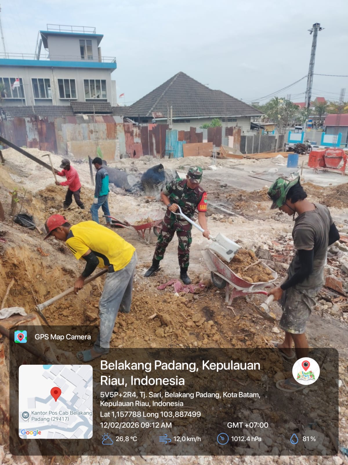 Batam-Guna memastikan proses pembangunan berjalan aman dan sesuai ketentuan, Babinsa 02 Kelurahan Tanjung Sari, Koramil 05/Belakang Padang, Serka Eko Pranoto melaksanakan kegiatan komunikasi sosial (komsos) sekaligus pendampingan kepada para tukang di lokasi pekerjaan KDKMP, Kelurahan Tanjung Sari, Kecamatan Belakang Padang, Kamis (12/2/2026).