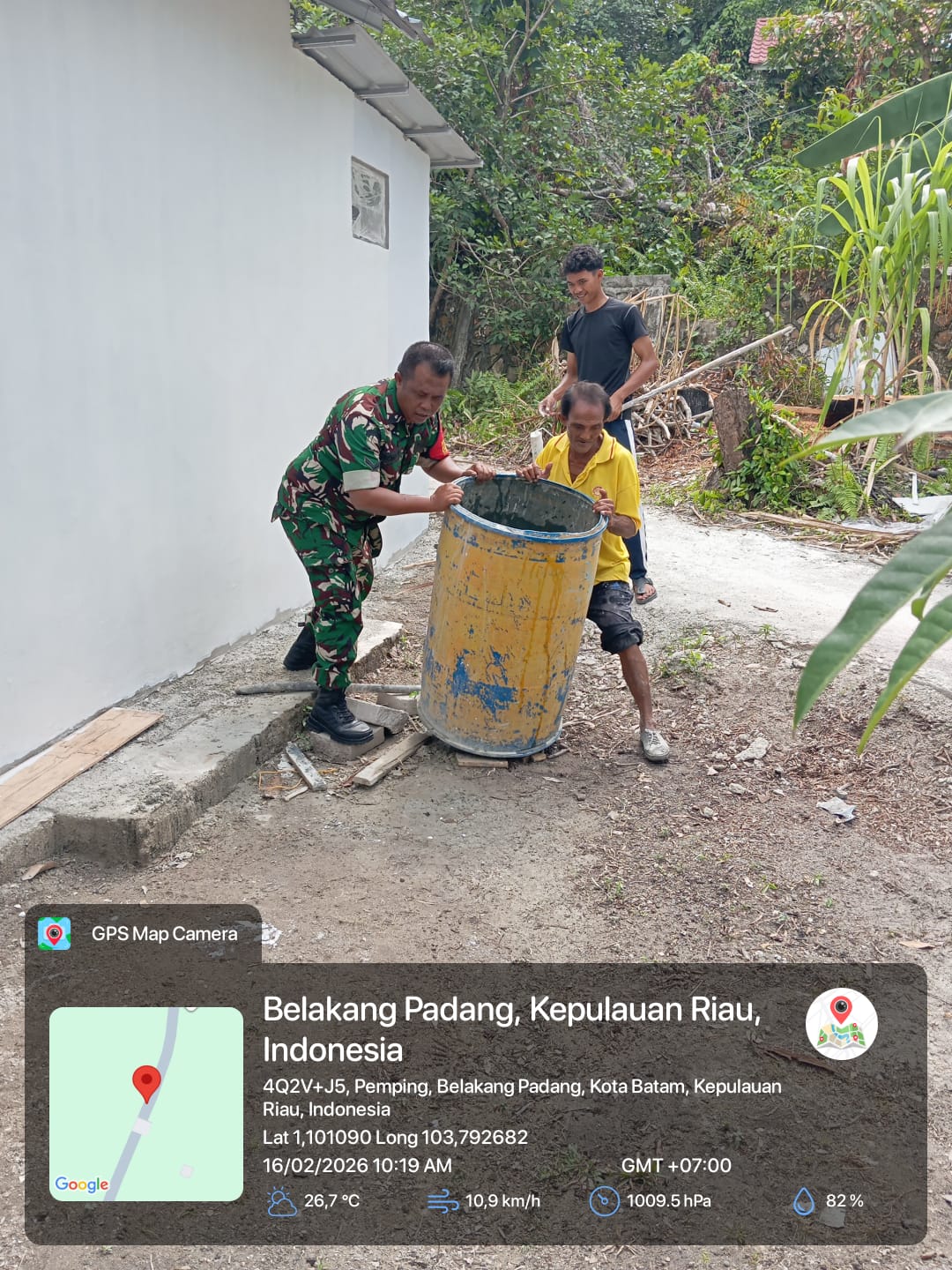 Kegiatan tersebut berlangsung di kediaman Bapak Samsudin, salah satu tokoh masyarakat setempat. Turut hadir dalam kegiatan itu Serda Roni Sitorus selaku Babinsa Pemping, Bapak Samsudin, Bapak Salim, serta Bapak Rafii. Suasana gotong royong tampak kental mewarnai proses renovasi rumah yang dilakukan secara bersama-sama.