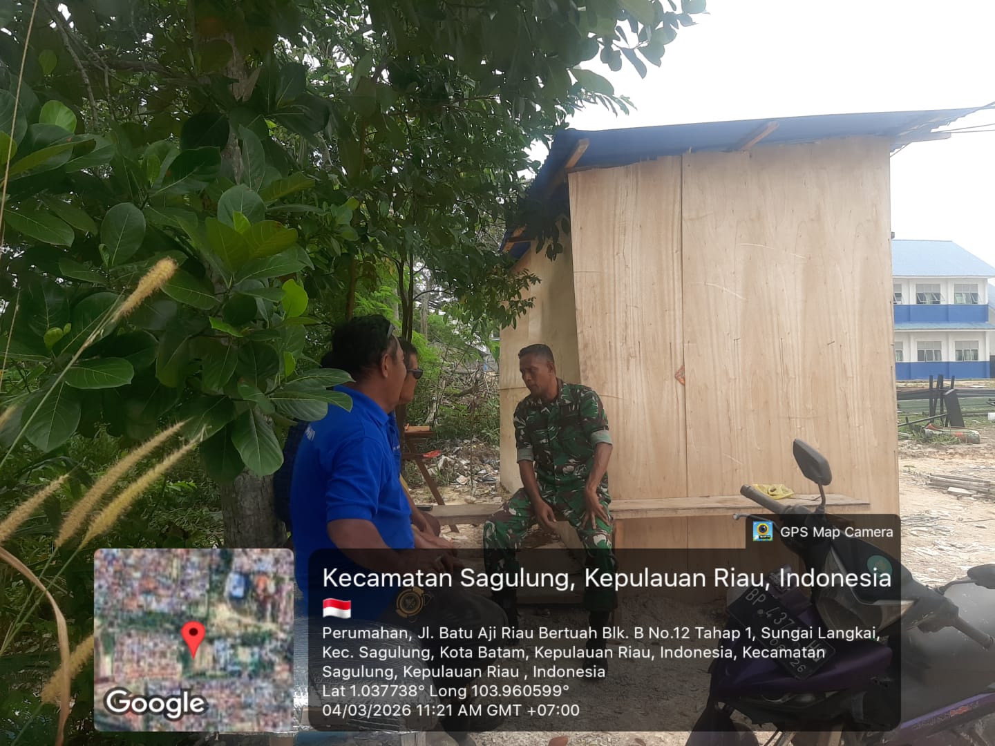 Batam — Babinsa Kelurahan Sungai Langkai, Koramil 02/Sekupang, Sertu Beldi melaksanakan kegiatan komunikasi sosial (komsos) bersama warga binaannya sebagai upaya mempererat hubungan sekaligus menyampaikan pesan-pesan pembangunan dan kepedulian lingkungan, Rabu (4/3/2026).