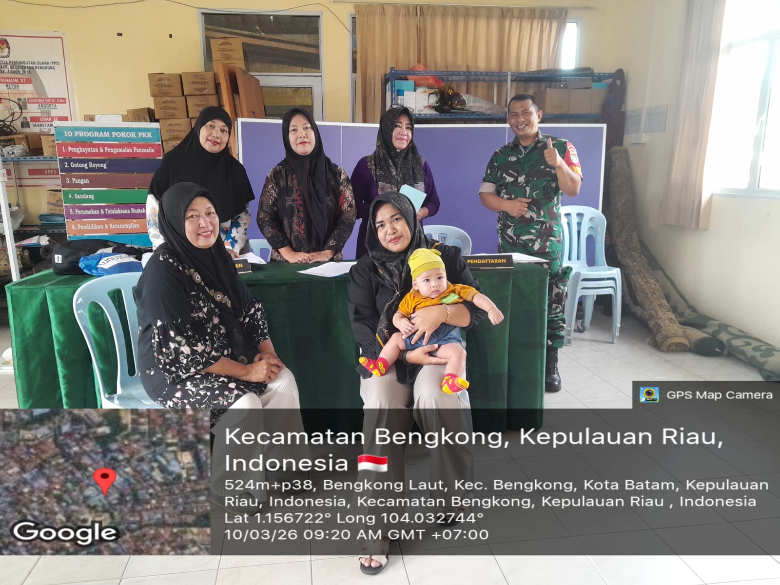 Batam — Bintara Pembina Desa (Babinsa) Kelurahan Bengkong Laut, Koramil 01/Lubuk Baja Kodim 0316/Batam, Serma Epi Johar melaksanakan pendampingan kegiatan Posyandu Mawar 10 RW 01 yang digelar di Aula Kantor Lurah Bengkong Laut, Kecamatan Bengkong, Kota Batam, Selasa (10/3/2026).
