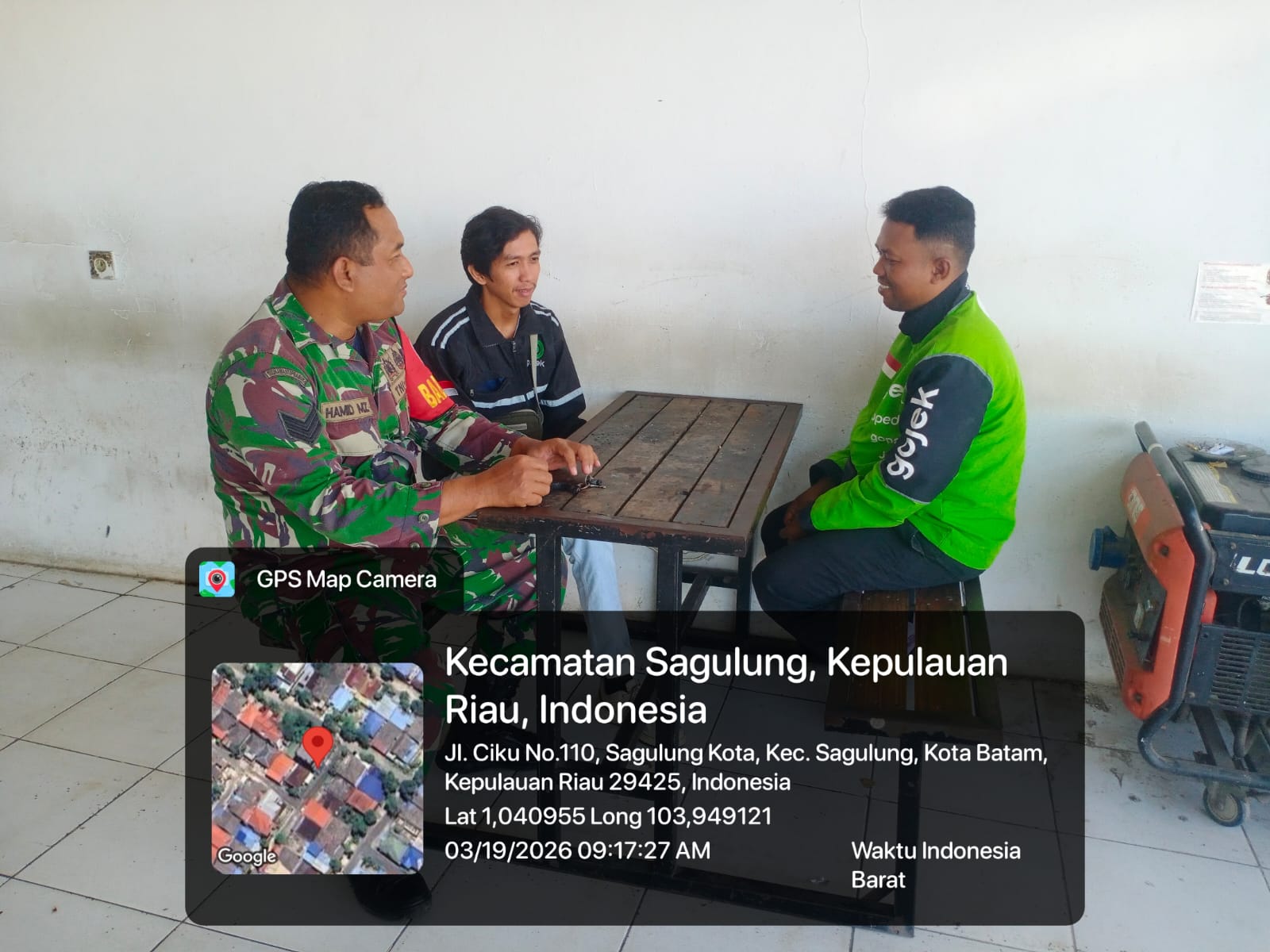 Batam – Dalam upaya menjaga stabilitas wilayah sekaligus meningkatkan kedekatan dengan masyarakat, Babinsa Sagulung Kota Koramil 02/Sekupang, Kodim 0316/Batam, Serka Hamid Muzaqqi melaksanakan kegiatan komunikasi sosial (komsos) bersama warga binaan di Kecamatan Sagulung, Kota Batam, Kamis (19/3/2026).