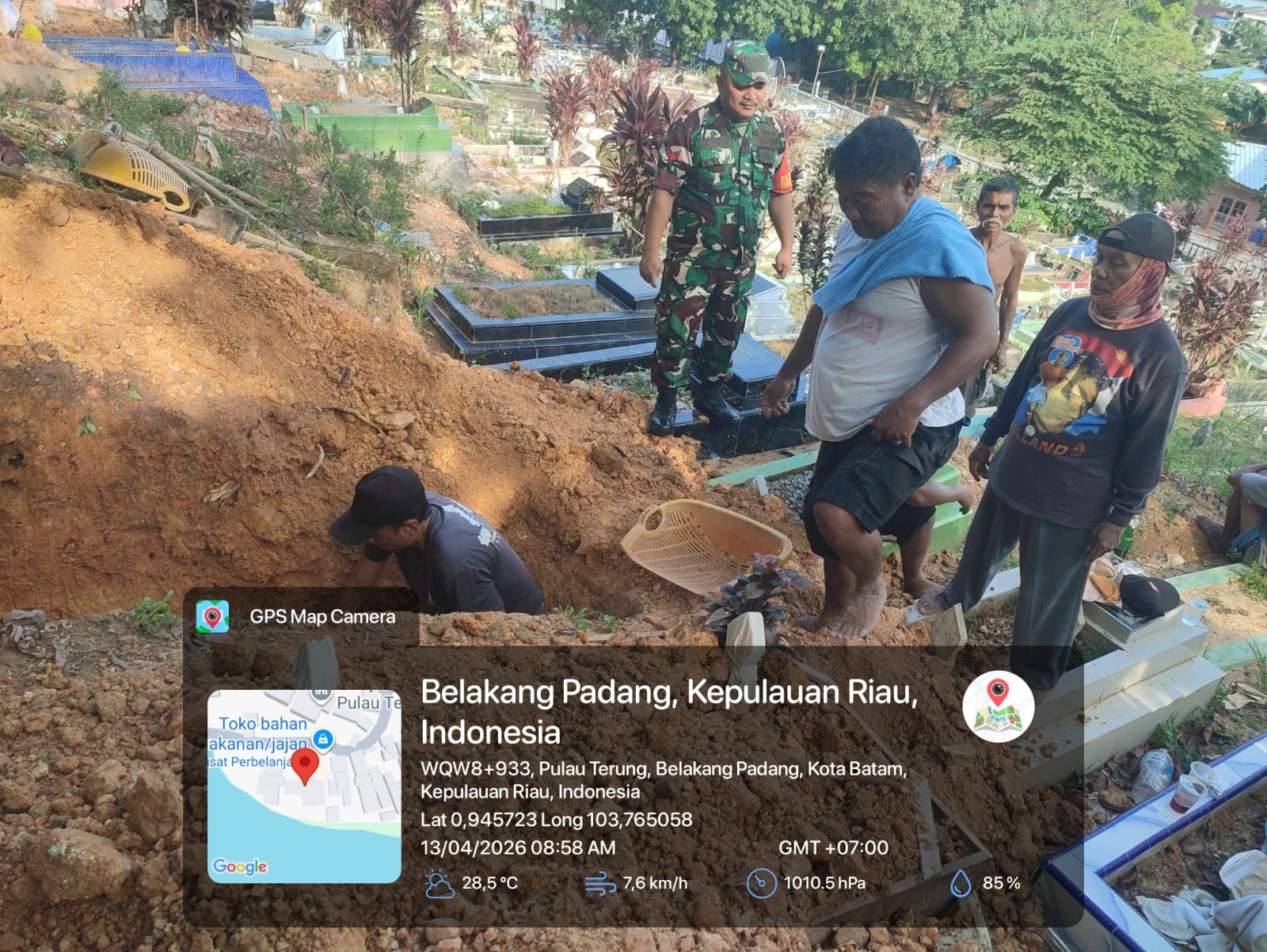 Batam- Di tengah aktivitas sederhana namun sarat makna di kawasan pemakaman umum Kampung Tanjung, Kecamatan Belakang Padang, kehadiran aparat teritorial kembali menunjukkan perannya sebagai penghubung sosial di tengah masyarakat. Babinsa Kelurahan Pulau Terong, Koramil 05/Belakang Padang, Koptu Dedi Nainggolan, melaksanakan komunikasi sosial (komsos) dengan warga binaan pada Senin (13/4/2026) pagi.
